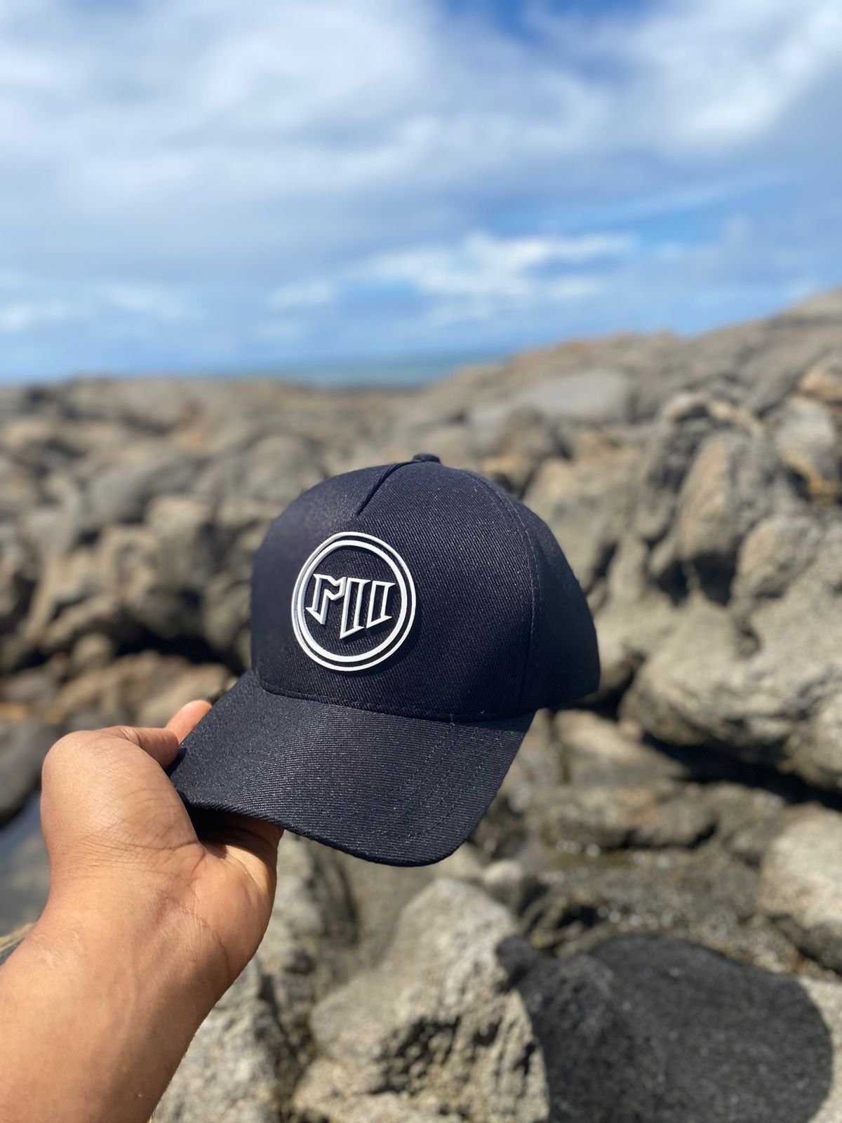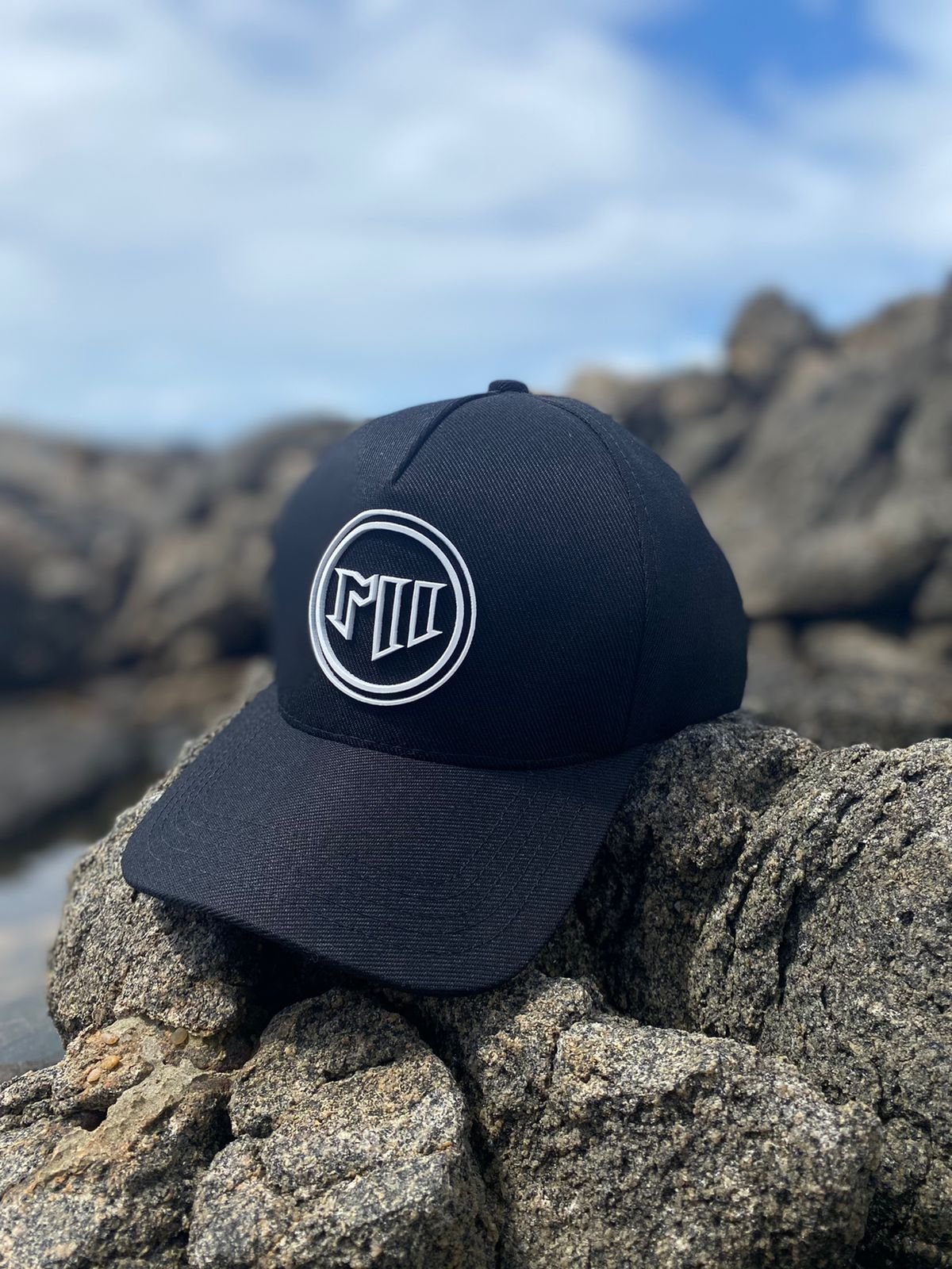 – Boné Preto Aba Curva, estilo americano, confeccionado em tecido padrão;